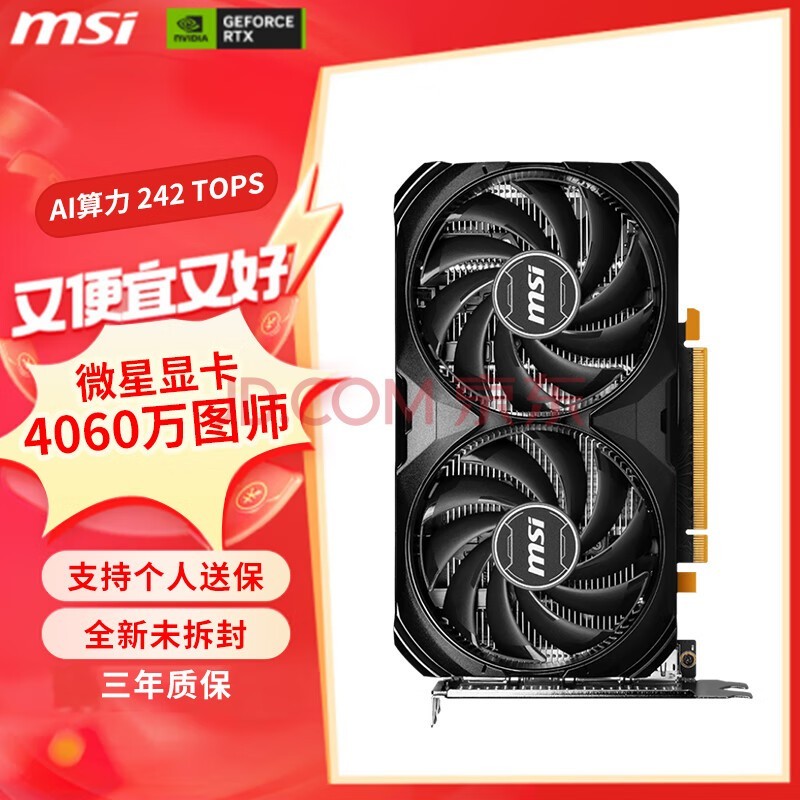 微星(MSI)RTX4060 VENTUS 2X WHITE 8G OC 万图师电竞游戏设计电脑独立显卡 4060万图师黑色2X