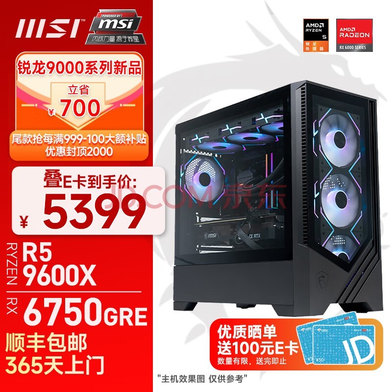 微星(MSI)R5 9600X/RX6750GRE/7800XT/RTX4060Ti/4070S台式组装机游戏电竞设计电脑主机DIY整机AMD新品首发 配置二:9600X+RX6750GRE 12G