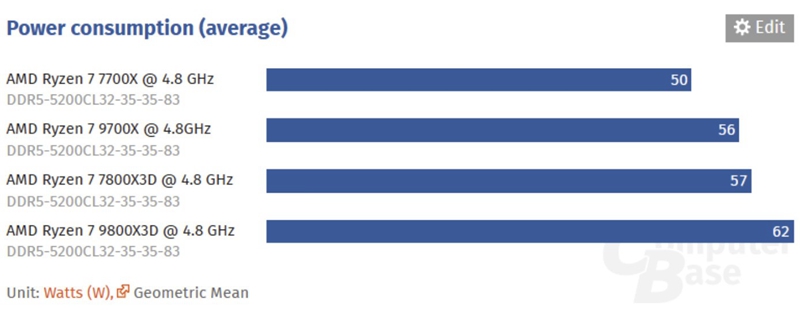 锐龙7 9800X3D确实上涨了一些,不过整体功耗依旧非常低,这种功耗增加5W带来15%的性能提升非常能够接受。