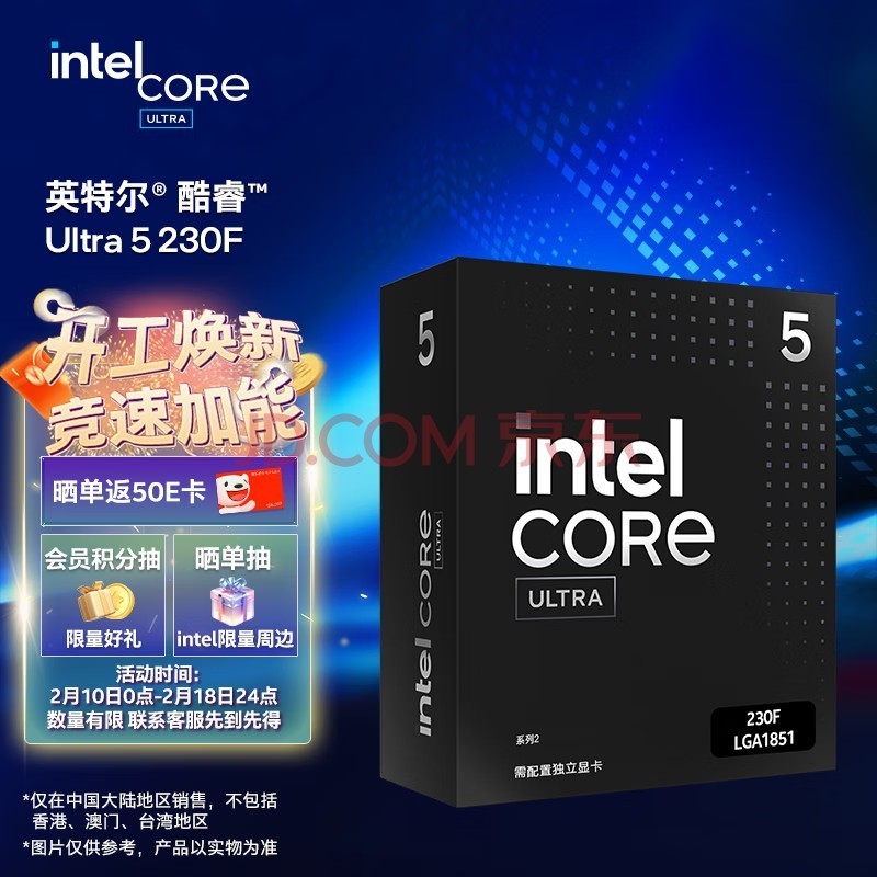 另外还是要注意的是,酷睿Ultra 5 230F处理器自身不带核显,装机时必须搭配独显使用,否则无法点亮。感兴趣的朋友可以点击下方链接进入产品电商页面了解更多销售信息: