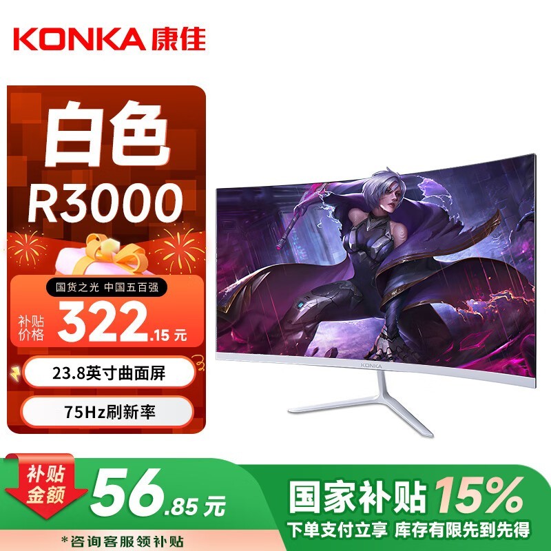康佳 KM2413H 23.8英寸 白色 曲面屏 FHD 全高清 低蓝光 HDMI接口 可壁挂 电脑液晶办公显示器 国家补贴