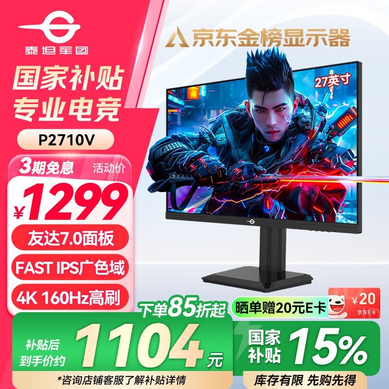 泰坦军团 P2710V显示器在京东正在热销,原价1499元,现在参加每满1490-200元的活动,最终到手价仅需1299元/件,喜欢的朋友可不要错过这个机会。