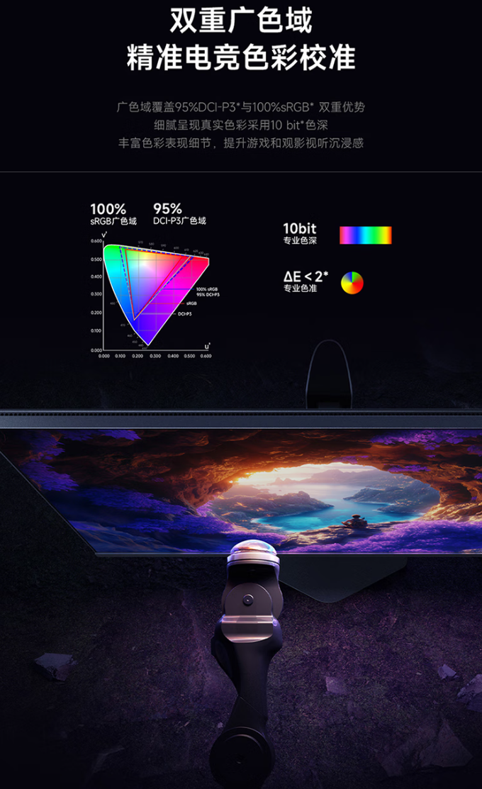 新品显示器支持覆盖 100% sRGB 色域、95% DCI-P3色域,采用小米青山护眼方案,提供2×DP2.1接口、2×HDMI2.1接口。另外,小米 REDMI27英寸显示器 G27U还配备升降旋转支架。