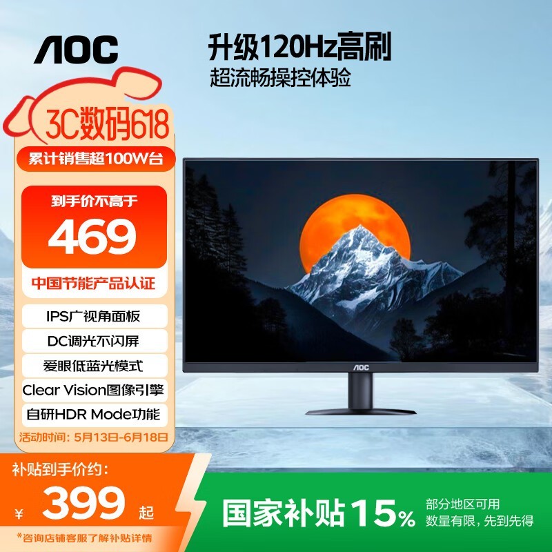 AOC 24B35H在京东的原价是469元,现在下单可以领取满200元减20元的优惠券,并且云闪付国补能参与立减15%的优惠活动,这样算下来,实际到手价低至375.41元。这对于想要入手一款性能不错的显示器的朋友来说是个不错的选择。