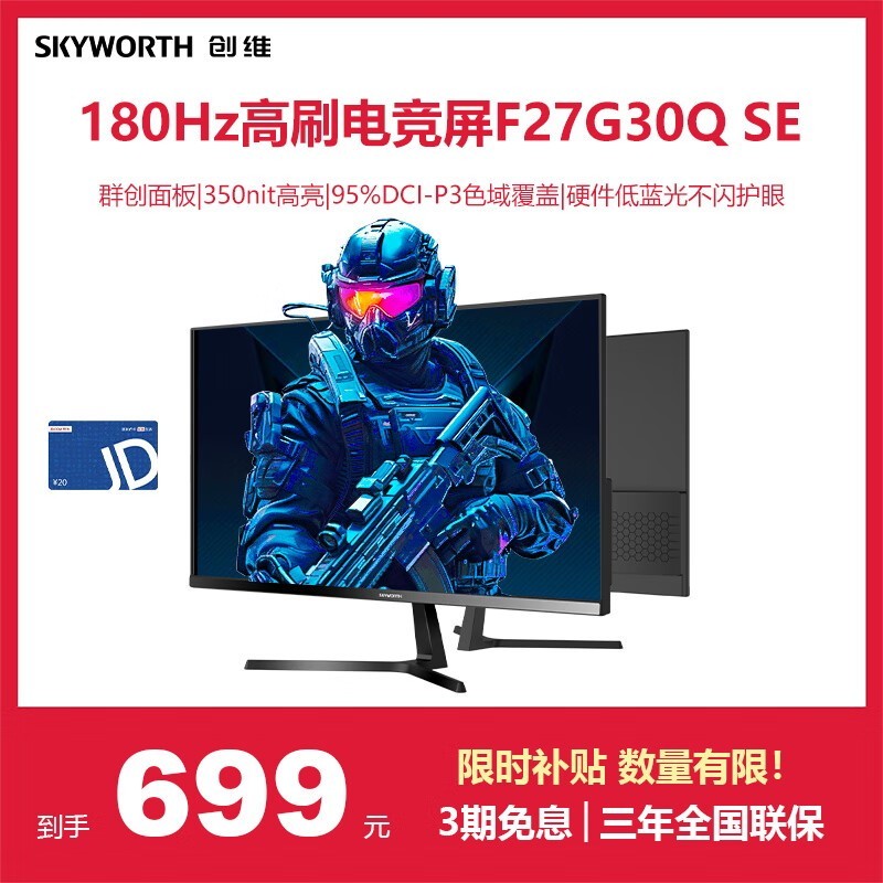 创维 F27G30Q SE 27英寸 电竞显示器 2K 180Hz 快速液晶 GTG 1ms IPS HDR 硬件低蓝光 电脑显示屏