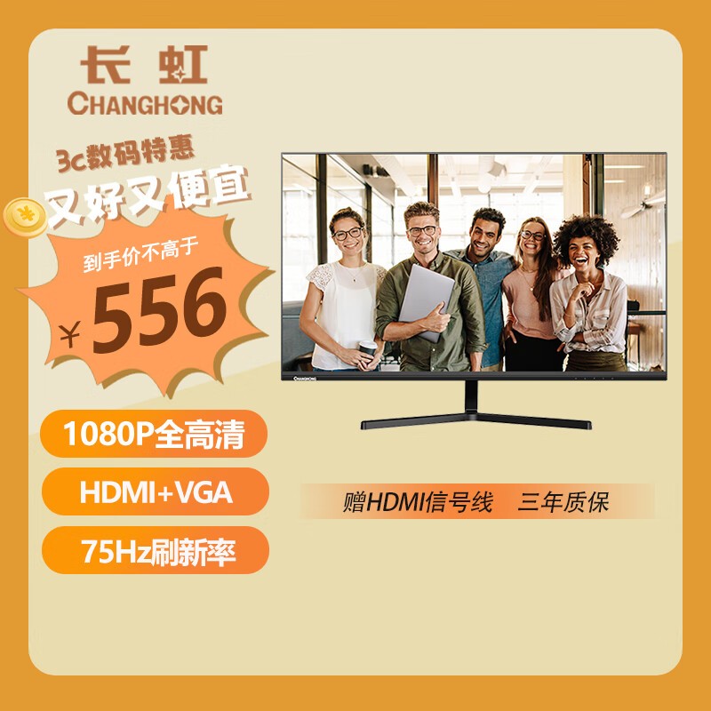 长虹 27P520F 27英寸 办公显示器 FHD全高清 75Hz 低蓝光爱眼 HDMI+VGA端口 可壁挂 电脑显示屏