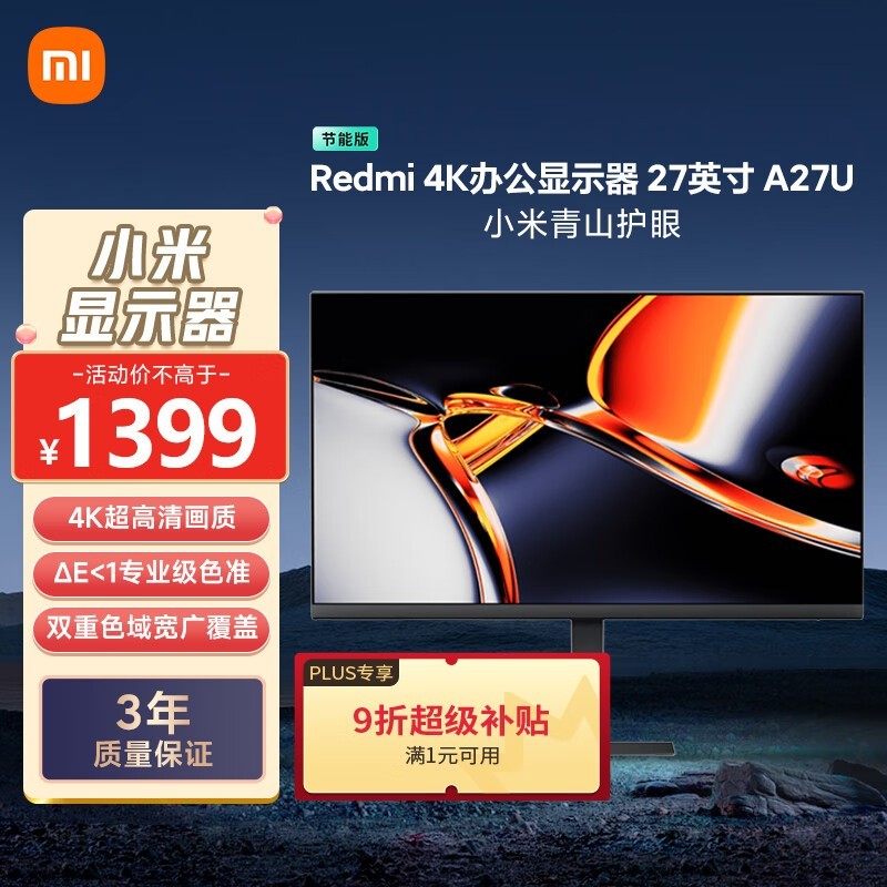 红米 A27U 27英寸4K超清显示器 专业级色准 10Bit 双重广色域 旋转升降支架办公显示器 节能版