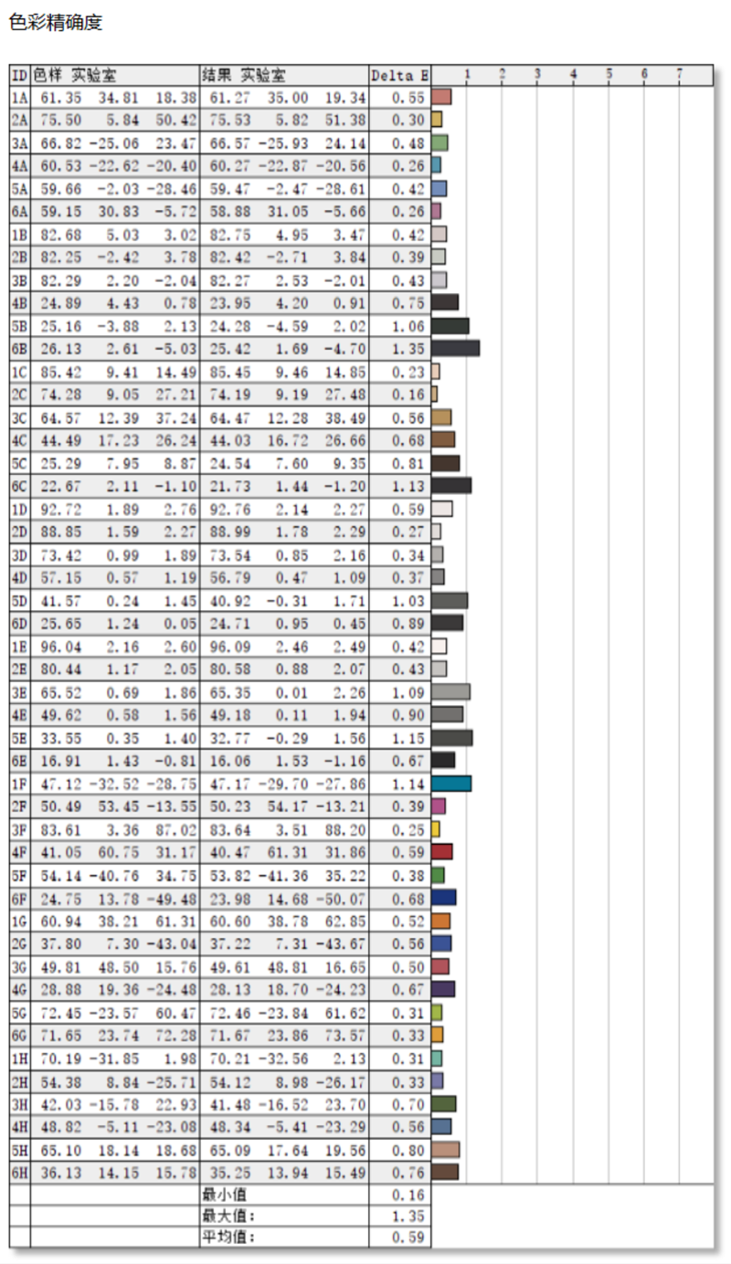在色彩准确度的测试中,蚂蚁电竞 ANT275PQ显示器平均ΔE值为0.59,最大ΔE为1.35。一般来说平均ΔE<2,人眼就基本上分辨不出色彩的差异,蚂蚁电竞 ANT275PQ甚至做到了平均ΔE值≤1,最大值也不超过2,可以说即使面对部分专业显示器也毫不逊色。