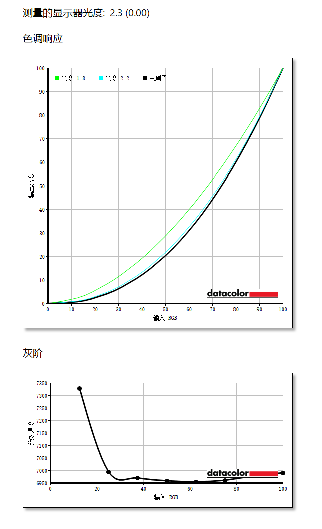 我们实测Lecoo N2739SQ电竞显示器的光度为2.3,与标准的2.2重合度非常不错,其色彩亮度映射准确度相当可以,使用中不用担心色彩亮度失真、偏色、亮度不均匀等问题。灰阶方面,整体都在6950K以上,画面偏冷一些。