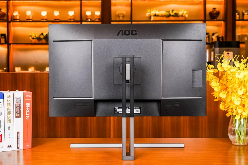 AOC U32U3D采用了三面窄边框设计,在提升屏占比的同时还拉高了颜值,在使用多屏拼接时也可以获得更好的观感,正面的整体设计颇具工业美感。