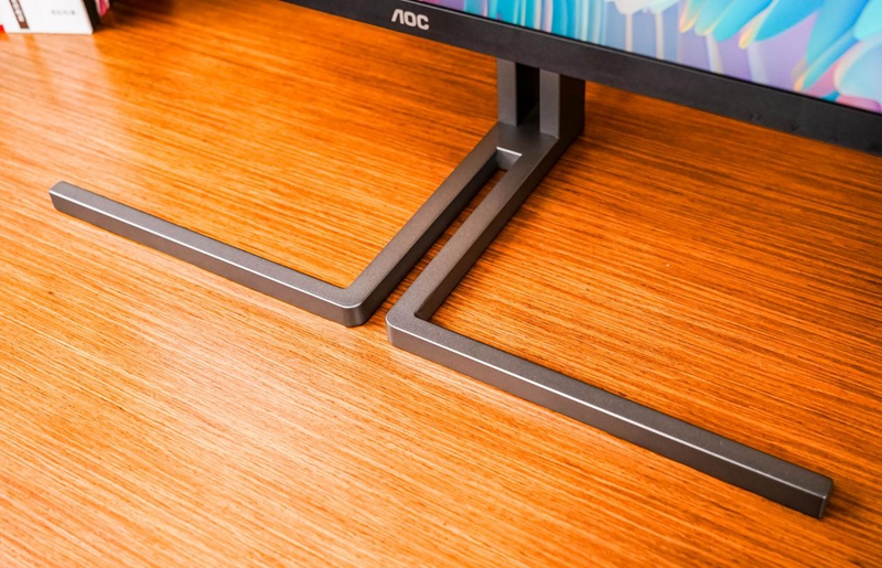 底座部分就是AOC U32U3D这次AOC在外观设计方面的一次大胆尝试,其采用独特π形金属支架,外观颇具设计巧思,放在桌上就如同工艺品一般,能够提升桌面整体的高级感。中间的孔位既是设计的延伸同时也是AOC注重实用性的体现,方便了用户对线材进行收束。