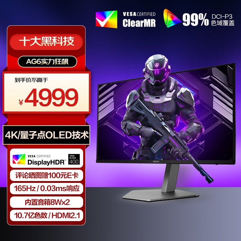 冠捷 AG326UD 31.5英寸4K QD-OLED 165Hz 0.03ms 原生10bit 硬件低蓝光 PS5游戏电竞显示器 双8W音响