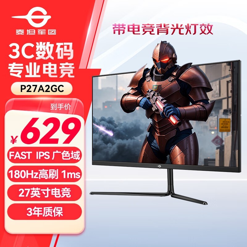 泰坦军团 P27A2GC 27英寸 180Hz高刷 1msGTG FAST IPS广色域 多情景模式电竞游戏高清电脑显示器 兼容144hz