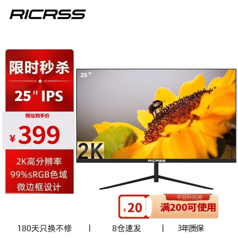 凡卡仕 RICRSS 25英寸超薄微边高清2K电竞游戏屏幕,为您带来沉浸式视觉体验。采用高透光率镜片和IPS硬屏技术,可提供出色的清晰度和细腻的色彩显示效果。同时,凡卡仕 RICRSS超薄的设计也使它更加便携,适合各种场合使用。现在购买还可享受优惠价格,只需399元即可入手,机会难得。快来抢购吧!
