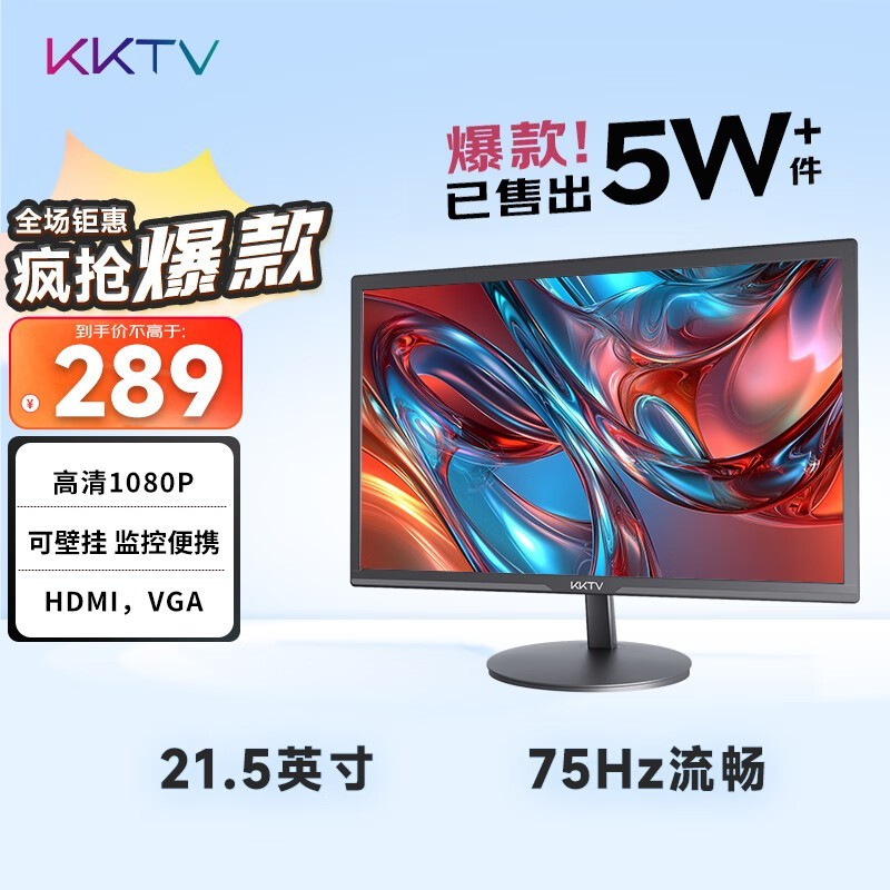 KKTV K22ZHT 21.5英寸办公电脑显示器K22ZH来啦!这款显示器有着FHD分辨率以及75Hz的刷新率,非常适合办公使用。KKTV K22ZHT能为你提供清晰的画面显示,满足日常办公需求。
