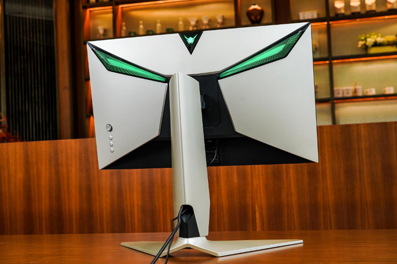 5、全新金属机甲风设计,外观酷炫有特色;蚂蚁电竞ANT253PQ采用锖色金属背板搭配品牌色呼吸灯,全新机甲风搭配炫酷灯效让玩家随时随地解放电竞天性。