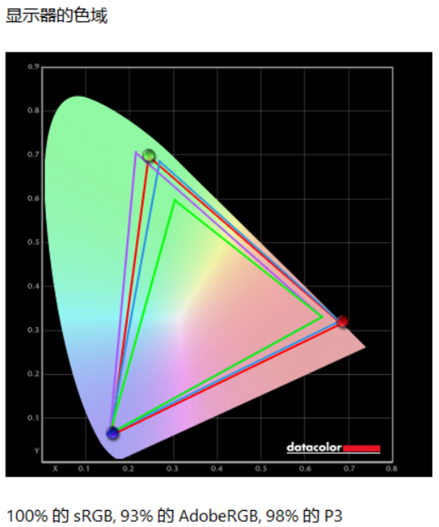 首先是色域测试,根据SpyderXElite软件的测试结果显示,蚂蚁电竞ANT253PQ显示器sRGB色域的覆盖度为100%,AdobeRGB色域的覆盖度为93%,P3色域的覆盖度为98%,表现完全符合官方宣传水平。
