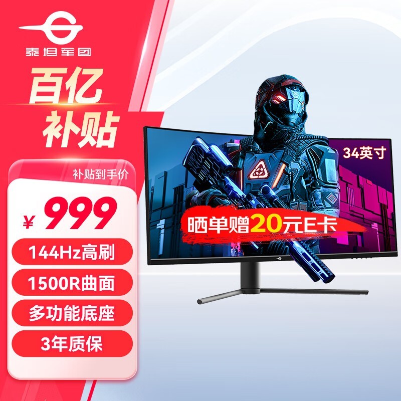 泰坦军团 C34CHR 34英寸电竞带鱼屏144Hz高刷WQHD广色域 1500R曲面屏 21:9 旋转升降HDR炒股票电脑准4K显示器