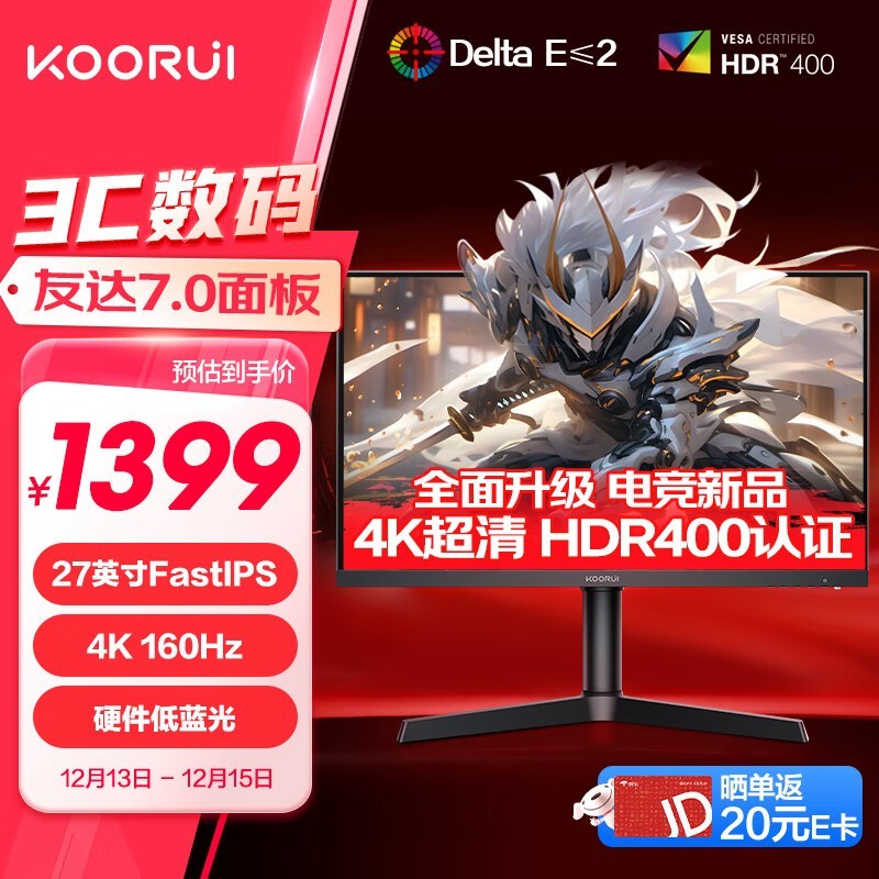 科睿 X71U 27英寸4K 原生160Hz FastIPS HDR400 硬件低蓝光 旋转升降支架 电竞游戏屏电脑显示器