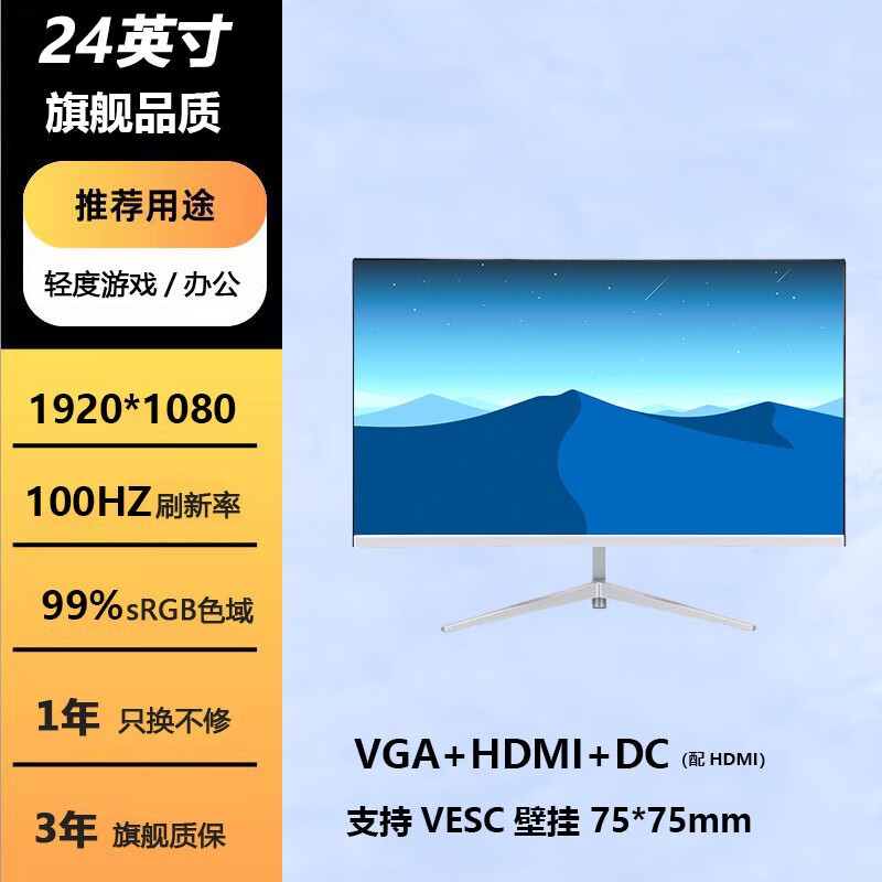 冠捷 PO显示器24英寸液晶台式电脑无边框显示屏2K高清超薄直面曲面办公设计游戏家用监控可壁挂 24英寸-直面白色无边【1K100Hz】