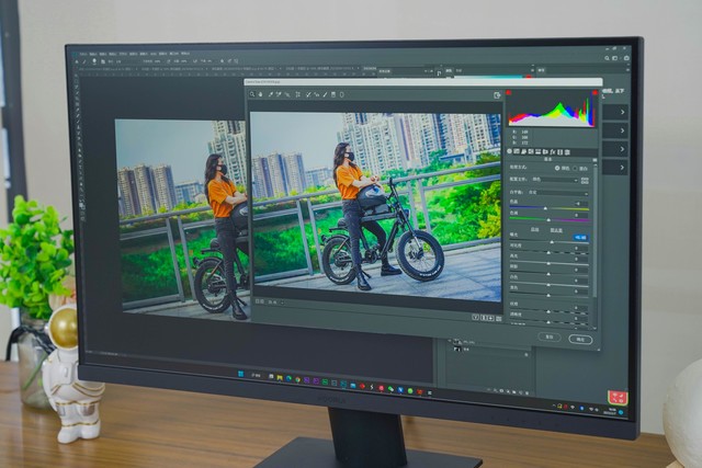 PS(Photoshop)作为应用最广泛的设计软件,我们也在科睿P6显示器上体验了一番。得益于科睿P6显示器的4K分辨率和优秀的色彩表现,在使用PS进行调色时,无论是人物服装还是画面背景的色彩还原都非常精准到位,完全不用担心偏色问题会影响到作品最终的呈现效果。