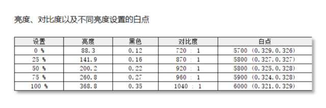 在色温一致性方面,我们可以看到科睿P6的色温值随着亮度逐渐提升,白点色温处于5700-6000K之间,较标准色温偏暖。