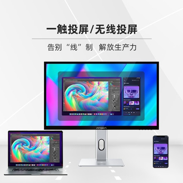 联合创新一直致力于为创造者带来解放生产力的专业国画显示器,专门针对以上症结,6月6日推出了联合创新 27P1U、联合创新 32P1U四款宽频投屏国画显示器,配上宽频投屏功能,只需打开笔记本电脑的NFC功能,手指直视显示器底座,就能畅快将笔记本电脑公文或剧作投屏到27寸或32寸超薄上,并且在同一调制解调器下,也可以选择电视投屏或镜像投屏将视频内容通过显示器播放,不影响笔记本电脑其它操作。此外,笔记型电脑电脑也可以通过投屏软件,将电脑链接显示器,畅快顺利实现全会公文投屏,提高全会交流效能。