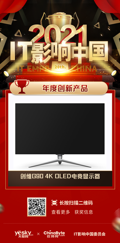 在本届评选活动中,TCL G90 4K OLED电竞显示器凭借着出色的整体表现荣膺“本年度创新产品”奖。