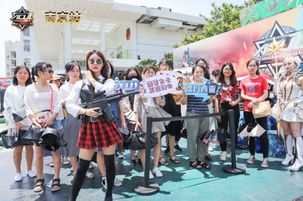 5月24日,上海站的比赛刚刚落下帷幕,ACUL第二季便赶往第二个赛区南京站,地推活动宣传当日气温高达35°,但依旧无法抵挡同学们对ACUL的热情。现场围得水泄不通,众多高校学子赶到现场,在现实中得以圆梦,纷纷拿起游戏内的武器调皮地PK一把,几位漂亮的coser小姐姐非常养眼,令不少学生驻足拍照留念。