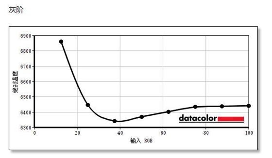 灰阶方面,显示器在40%-100%的亮度下比较稳定,基本是在6300K-6500K之间。