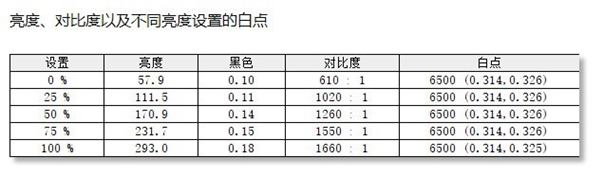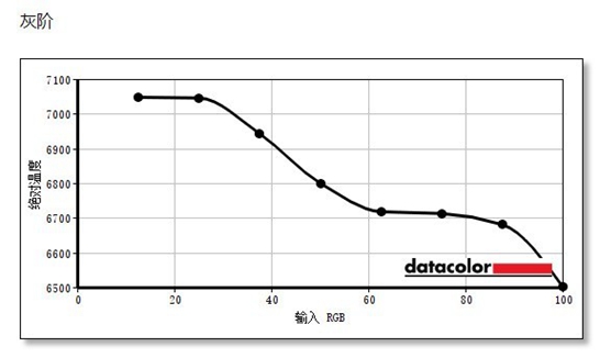 灰阶方面,显示器在60%-100%的亮度下比较稳定,基本是在6500K-6700K之间。