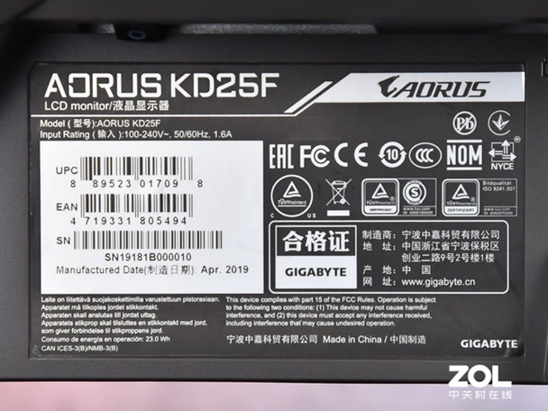 技嘉 KD25F电竞显示器采用三面窄边框设计,边框厚度在2mm左右,算上屏幕的黑边也就只有6mm左右,在我们之前评测过的显示器中这个黑边控制也是相当不错的了。