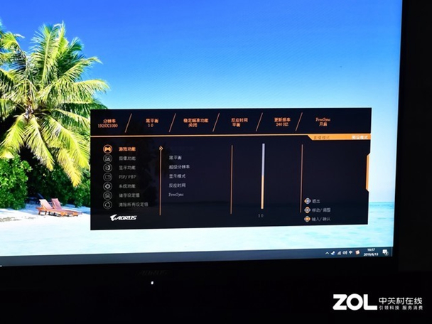 可以看到,作为一款专业的电竞显示器,OSD菜单上还拥有很多实用的游戏功能,比如Free Sync功能。