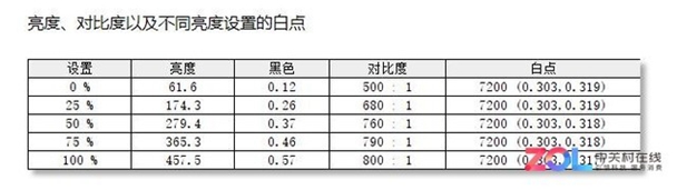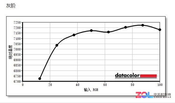 灰阶方面,显示器在40%-100%的亮度下表现平稳,基本是在7150K-7200K之间。