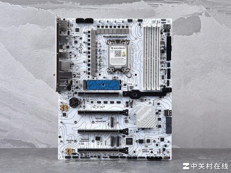 铭瑄瑄 Z890 Arctic主板背面装备了全覆盖金属装甲,做了灰白风金属涂装设计,既美观又实用,能有效保护PCB。