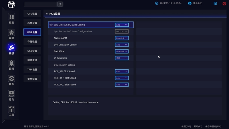 再往下是铭瑄BIOS中的高级菜单,去之前一样主要调节I/O设置,比如CPU核心、PCIe通道、网络这些功能都可以在这个界面中调整。
