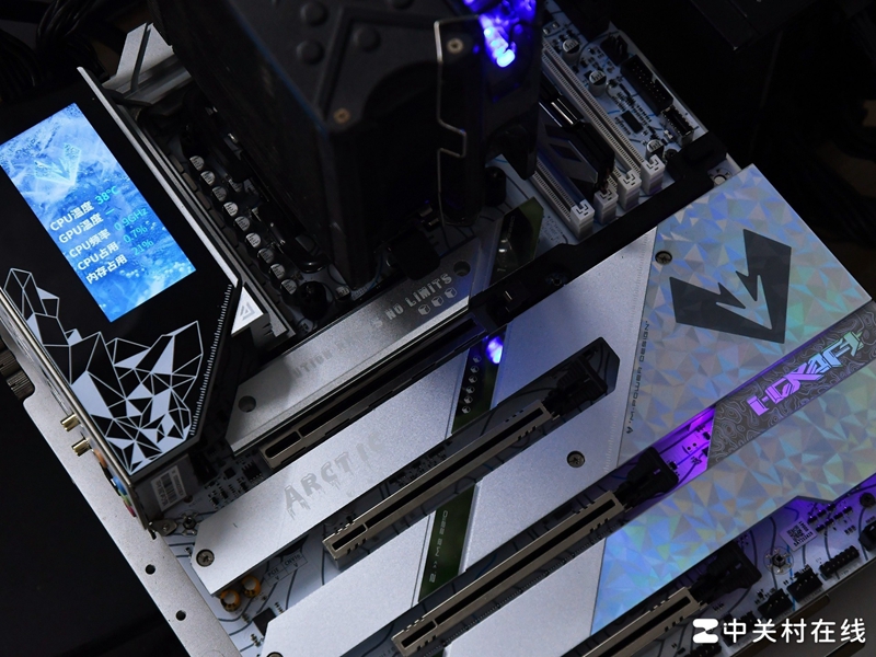 VRM散热装甲不仅拥有一块3.4英寸锐影屏,本身是两块超大金属散热片组成,由一根导热管相连,导热效率很高,还配备导热垫快速传导MOS热量。