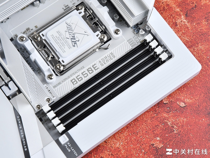 技嘉 B650E 冰雕背插版CPU插槽采用AM5接口,目前锐龙7000核锐龙9000都可以兼容AM5,散热器与AM4通用。