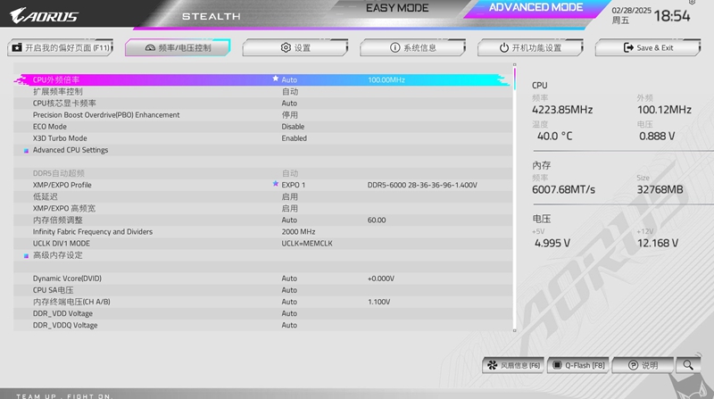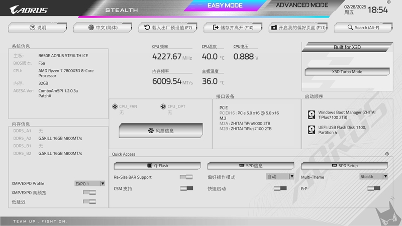 接下来就是信息界面,这俩底部包含EASY MODE的Q-Flash功能,就是BIOS升级启动项。