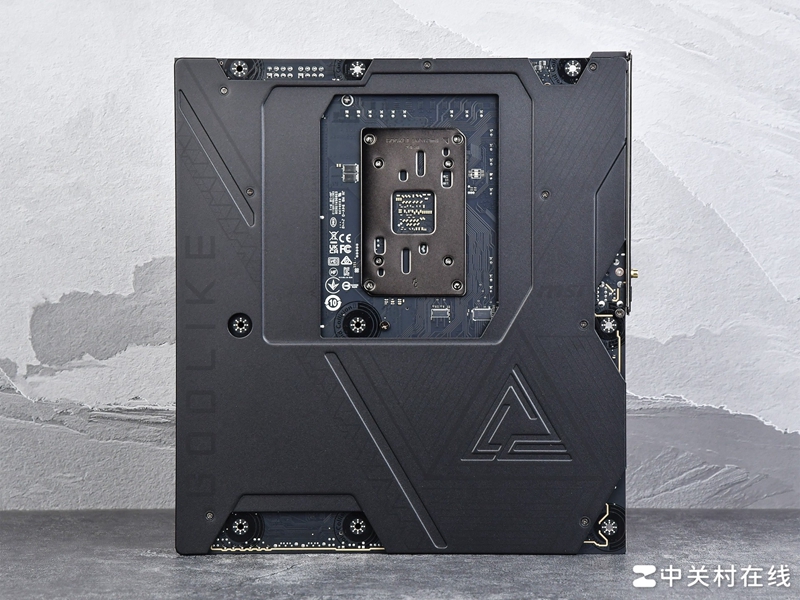 微星 X870E GODLIKE超神主板背板不出所料采用全金属背板设计,所以整个主板十分厚重,金属背板强度更高,为这块用料十足的主板搭配各类高端配件时提供足够的支撑强度。