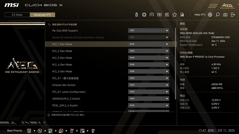 2 微星 X870E GODLIKE超神主板BIOS
