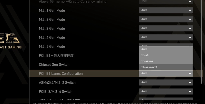 进入PCIe 子项可以根据需求调节各个接口的带宽。