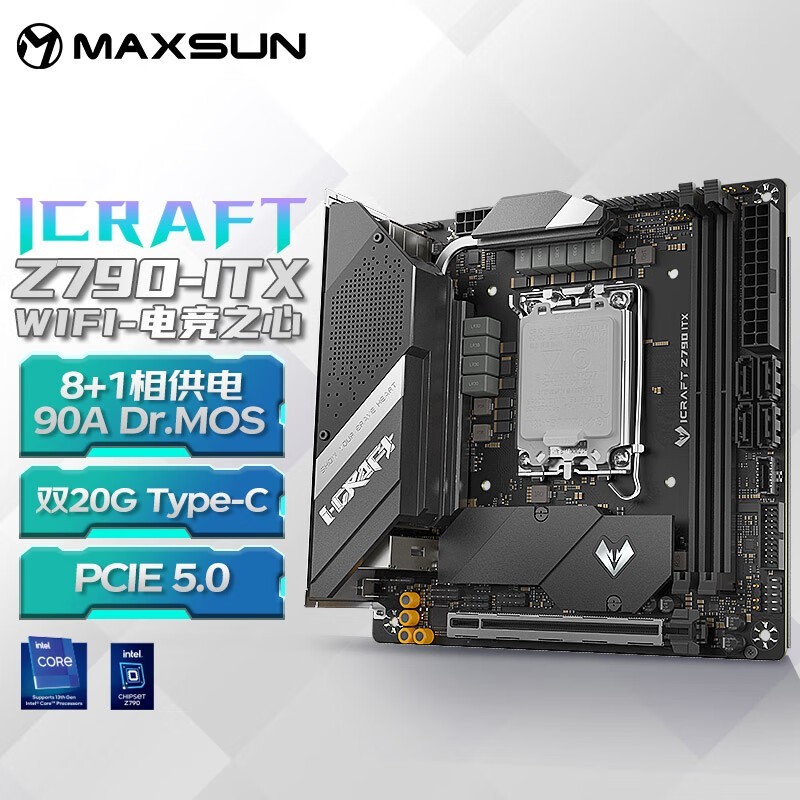 铭瑄 Z790 ITX WIFI DDR5电竞之心迷你主板 支持 CPU13600KF/13700K(Intel Z790/LGA 1700)