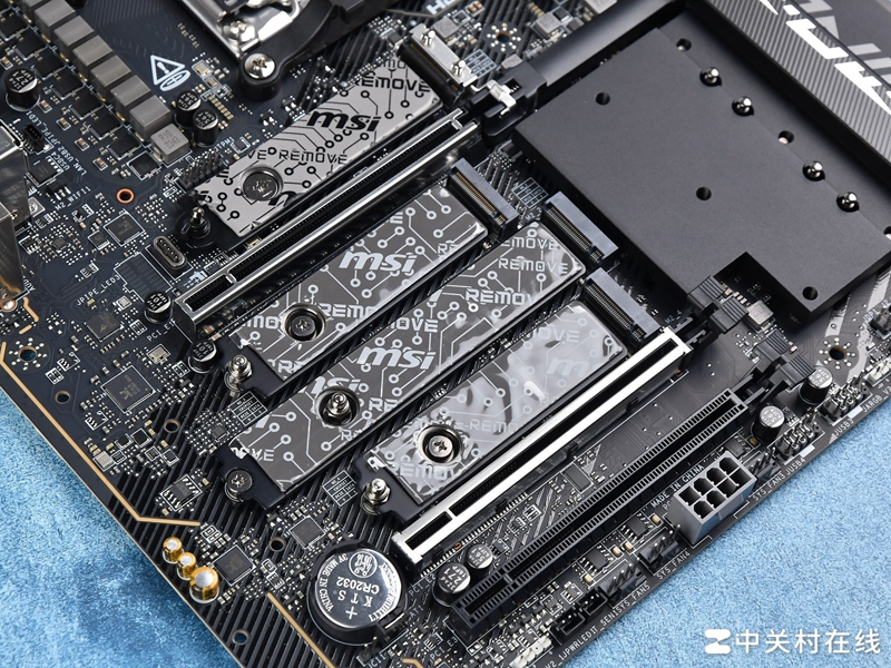 微星这次给最常用的顶部PCIe 5.0x16插槽准备了快拆按钮,按下即可将显卡拔出,对于装机拆机来说都很方便。