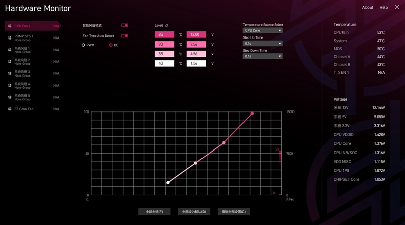 最后一个Hardware Monitor就是微星主板用来监控风扇的选项,可以在这里调整风扇曲线。