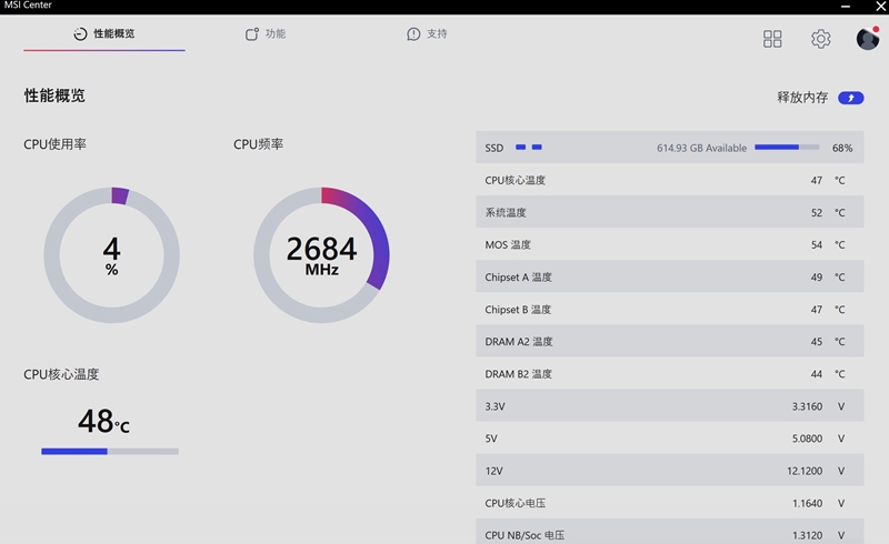 MSI Center主要用来调节整机灯效联动,内置非常多的灯效选项,定制化功能晚上。而除了灯效也能通过这款软件进行一些系统设置、优化和调节,总体来说新手和老玩家都建议安装使用。