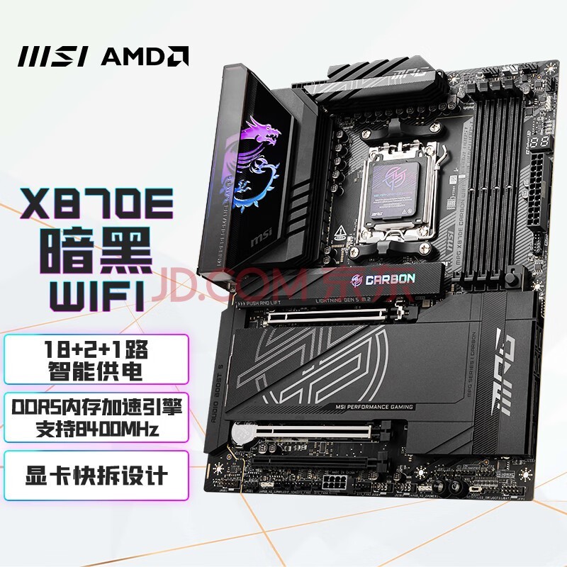 AMD此前承诺AM5插槽起码会延续到2025年,所以微星 X870E 暗黑主板的插槽依旧是AM5,所以能兼容锐龙7000/8000G/9000这最近两年发布的AMD处理器,到2027年之前后续升级AMD平台可以不用更换主板。