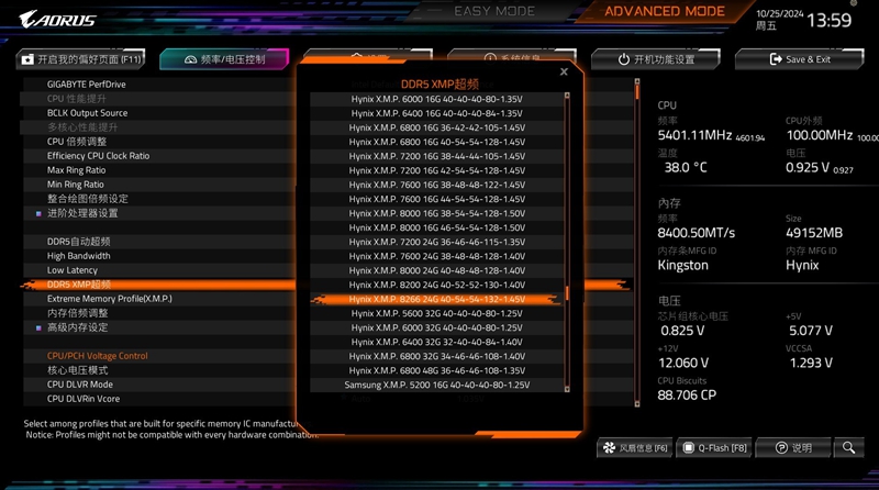 除此之外,如果要玩内存超频,可以试试加这个内存预设超频功能,里面会根据内存颗粒型号提供不同超频档位,极大节省手动超频调整时序频率等参数的时间。