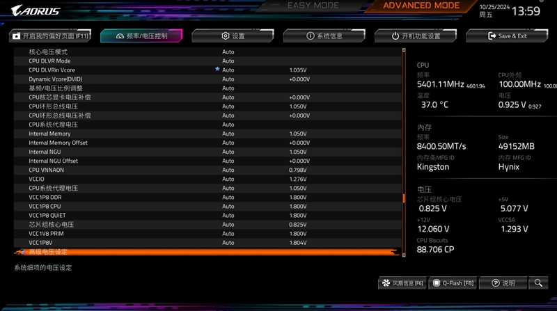 其余就是底部的电压调节选项,关于内存的VDD、VDDQ,核心SA电压设置选项也都齐全。