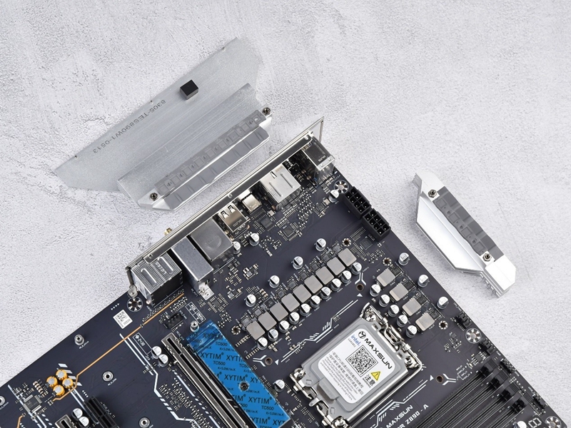 主板的核心位置是LGA1851接口,目前只能兼容酷睿Ultra 200S系列CPU,按照惯例还会支持下一代CPU,不过14代及之前的酷睿就不能兼容了。好消息是这个接口可以兼容LGA1700的散热器。